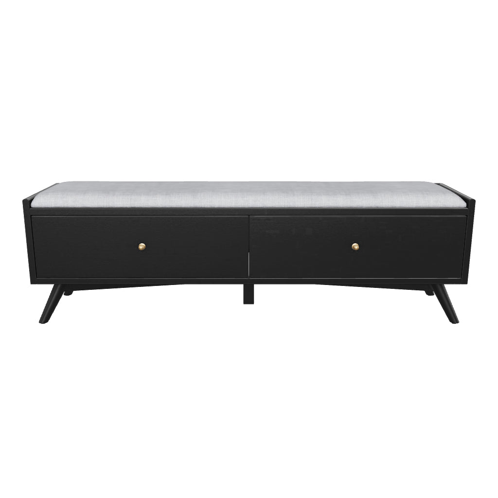 The Flynn collection features the classic lines of Mid-Century Modern furniture that never goes out of style. Its sturdy frames are built to last, constructed of sustainably sourced solid Mahogany to ensure a lifetime of use. The bench provide a roomy seating/storage solution and make it easy to create a cohesive decorating style or mix and match for a more personalized look. Crafted with English Dovetail Drawer Construction and Ball Bearing Metal Drawer Glides. Drawer is felt lined. Coordinates with other pieces in multiple finish options as part of the Alpine Furniture Flynn collection sold separately.