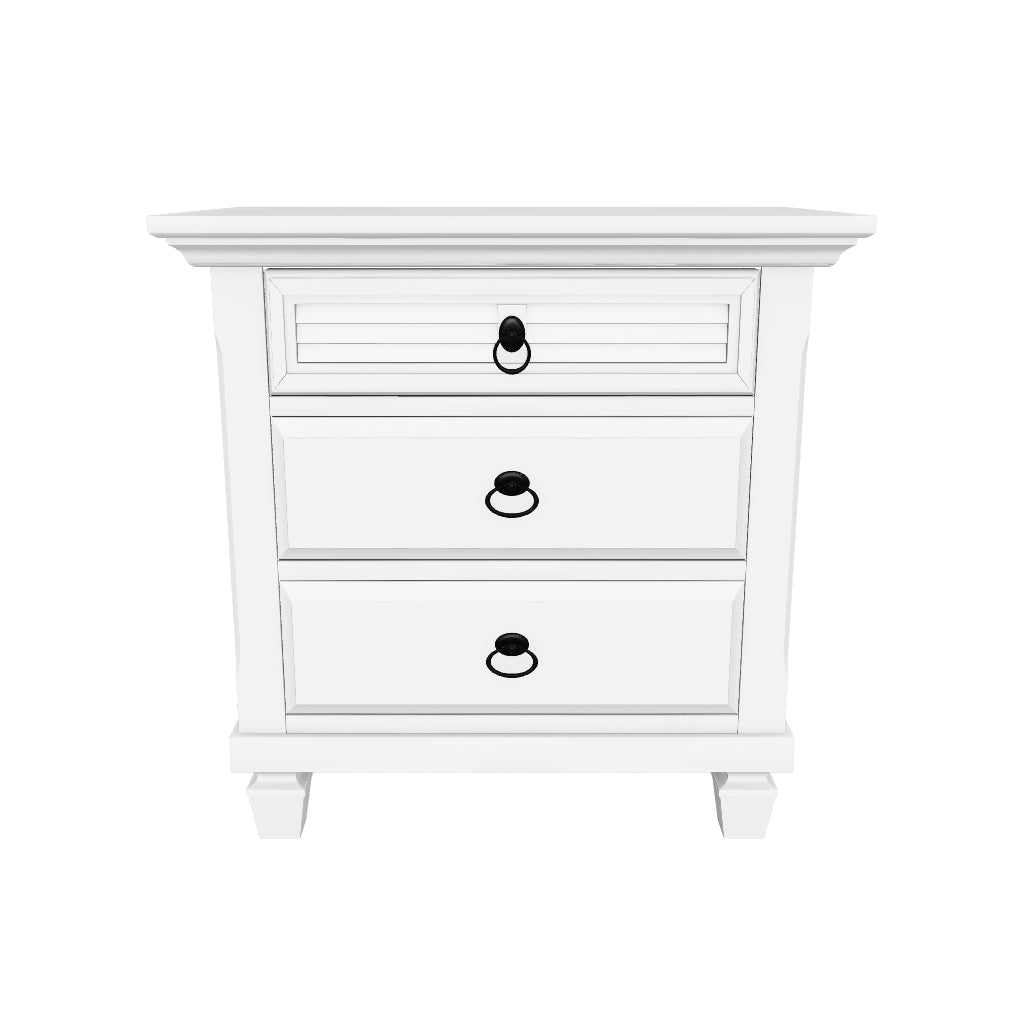 Stow away your bedtime and morning essentials with the Winchester 3-drawer Nightstand. This nightstand pairs with the Winchester Panel Bed for a classic, sophisticated, and functional set-up featuring ball-bearing metal drawer glides and ring-style handles for a smooth pull. The felt-lined top drawer is perfect for delicate personal effects. The Winchester Nightstand is finished in a classic white and constructed with eco-friendly pine solids and French and English dovetailing.